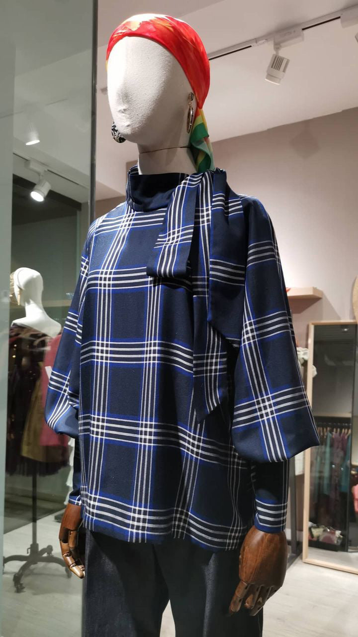 Top amplio con manga ranglan ligeramente largo con lazada lateral en cuello, grandes puños con 15 botones forrados y presillas en cada puño. Apertura en la espalda lágrima y botones forrados. Viscosa 100%. Espectacular.